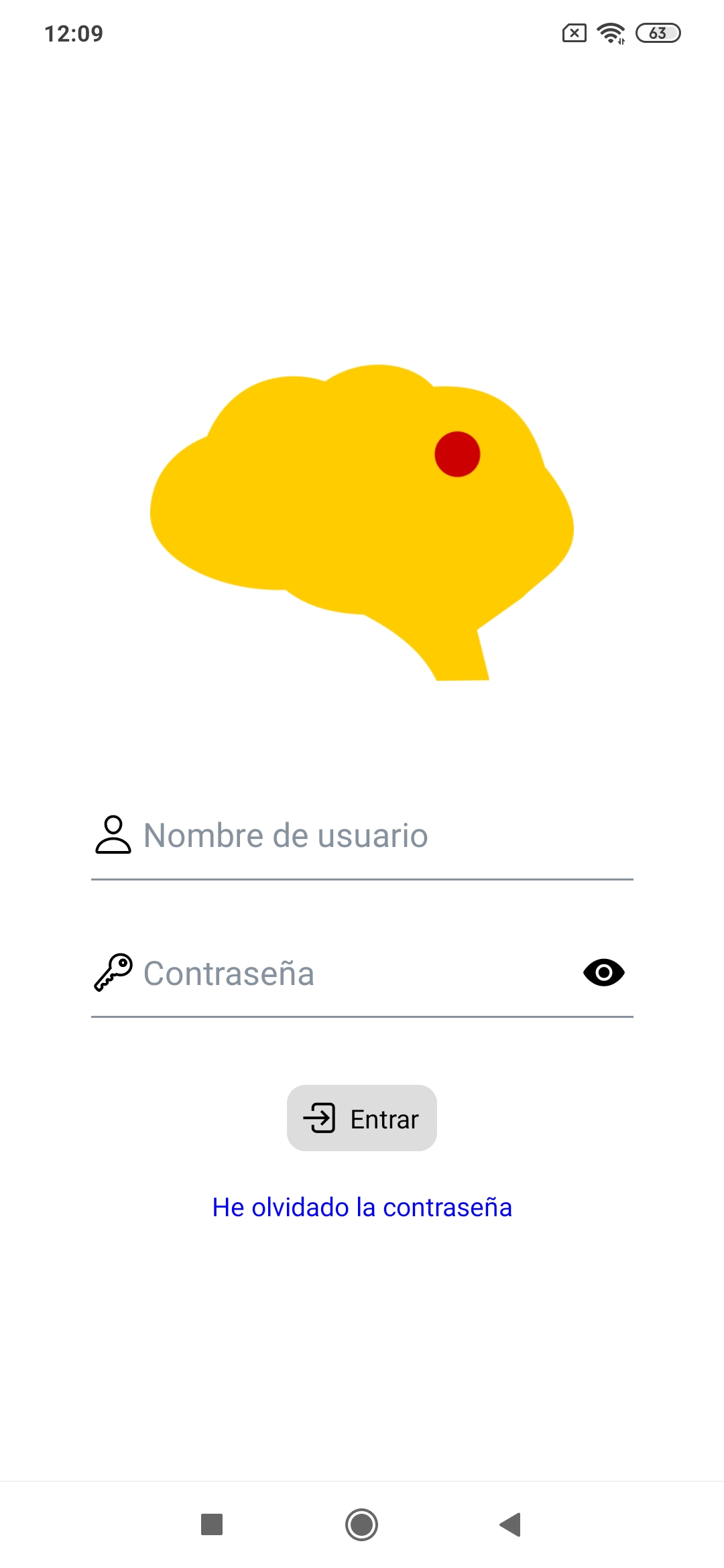 Tras la instalación de la aplicación, al abrirla encontramos una primera pantalla de acceso. Esta permite acceder al interior de la aplicación tras introducir el usuario y contraseñas, proporcionados al usuario por el profesional de enfermería que ha realizado el alta en el sistema.