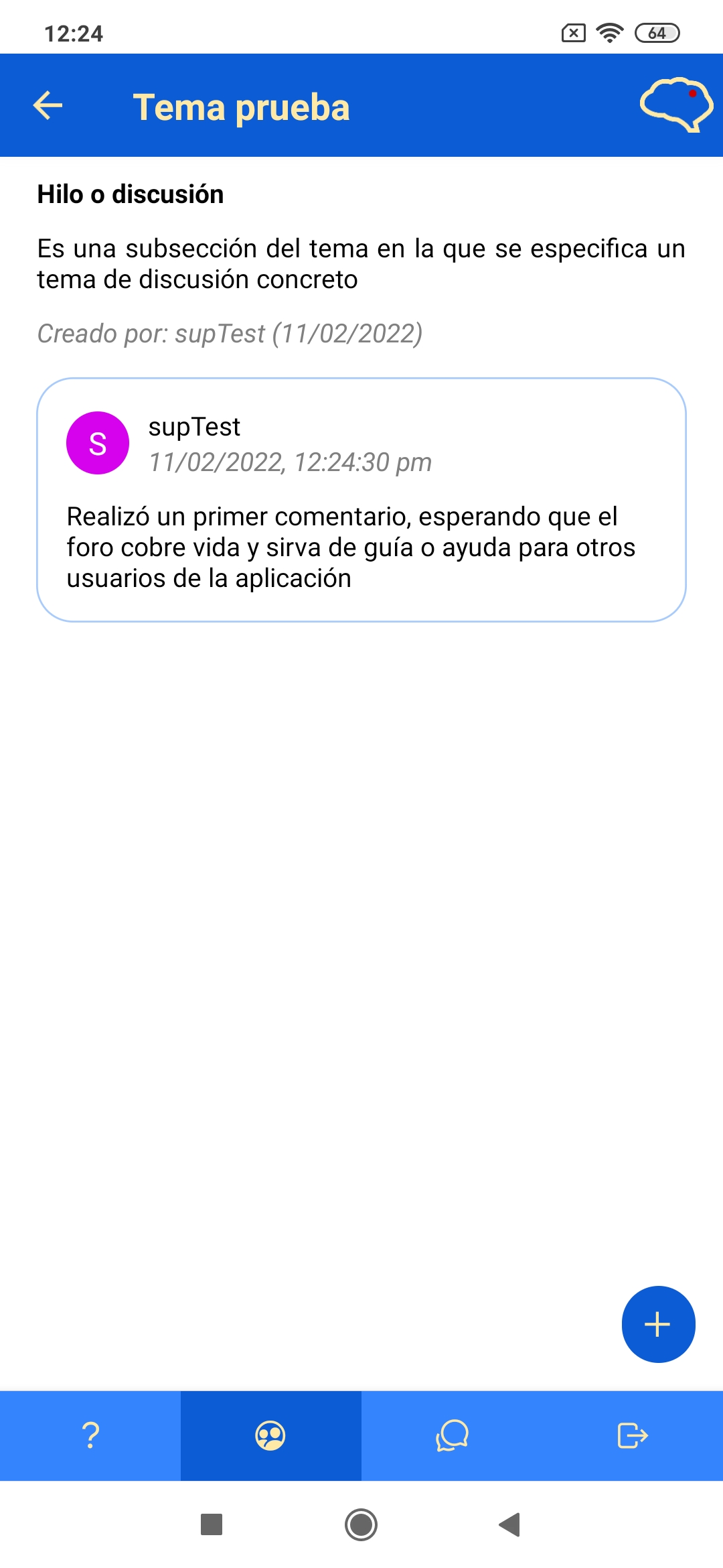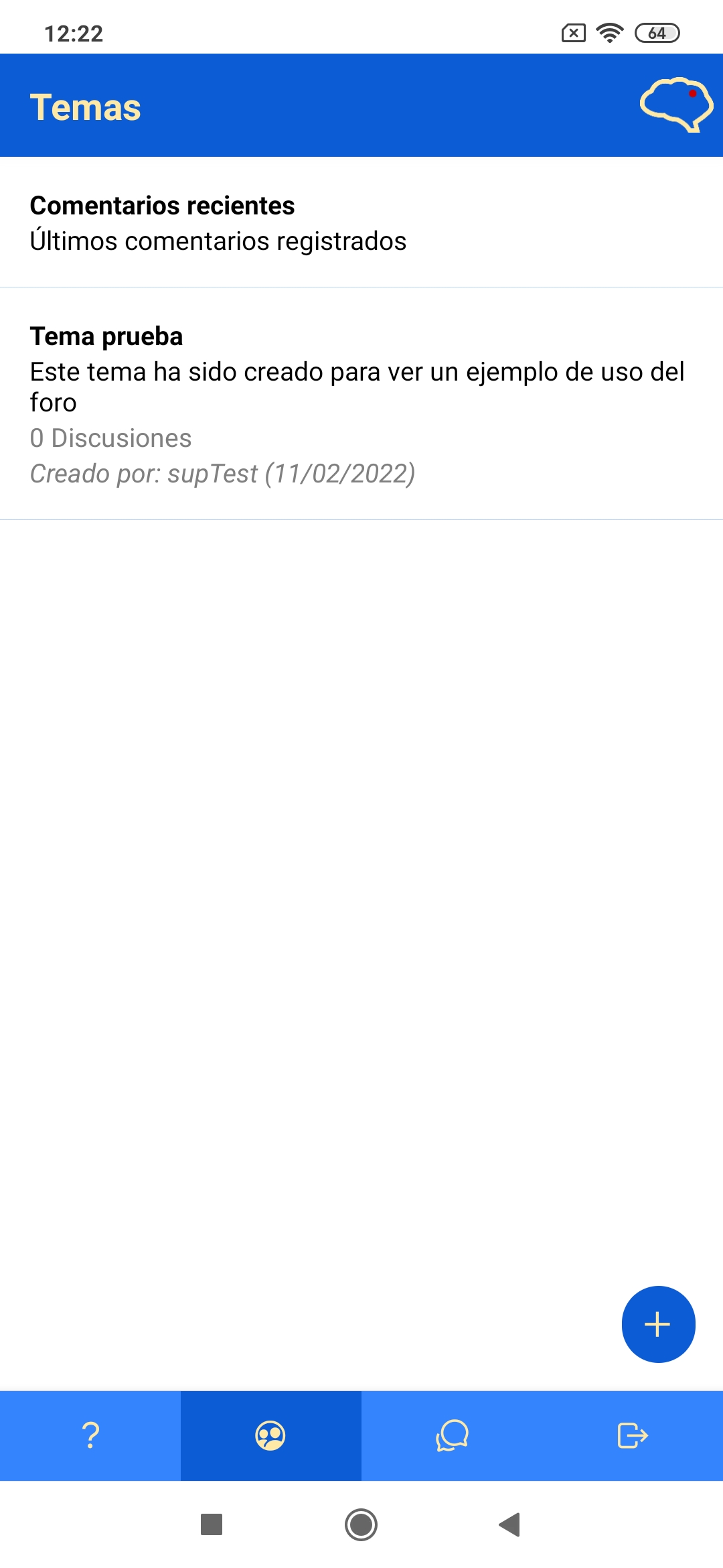 Por defecto, al entrar en la aplicación se muestra la sección de FORO.