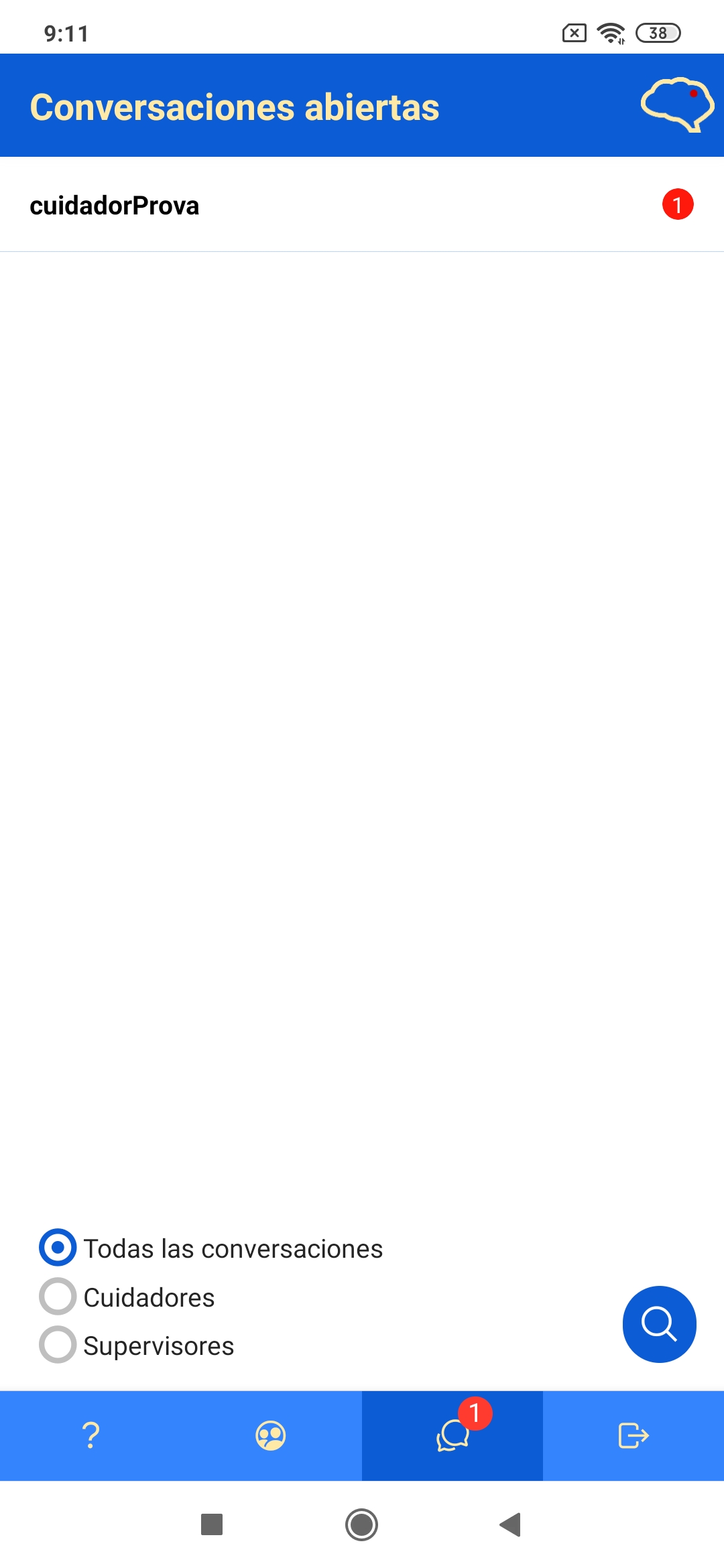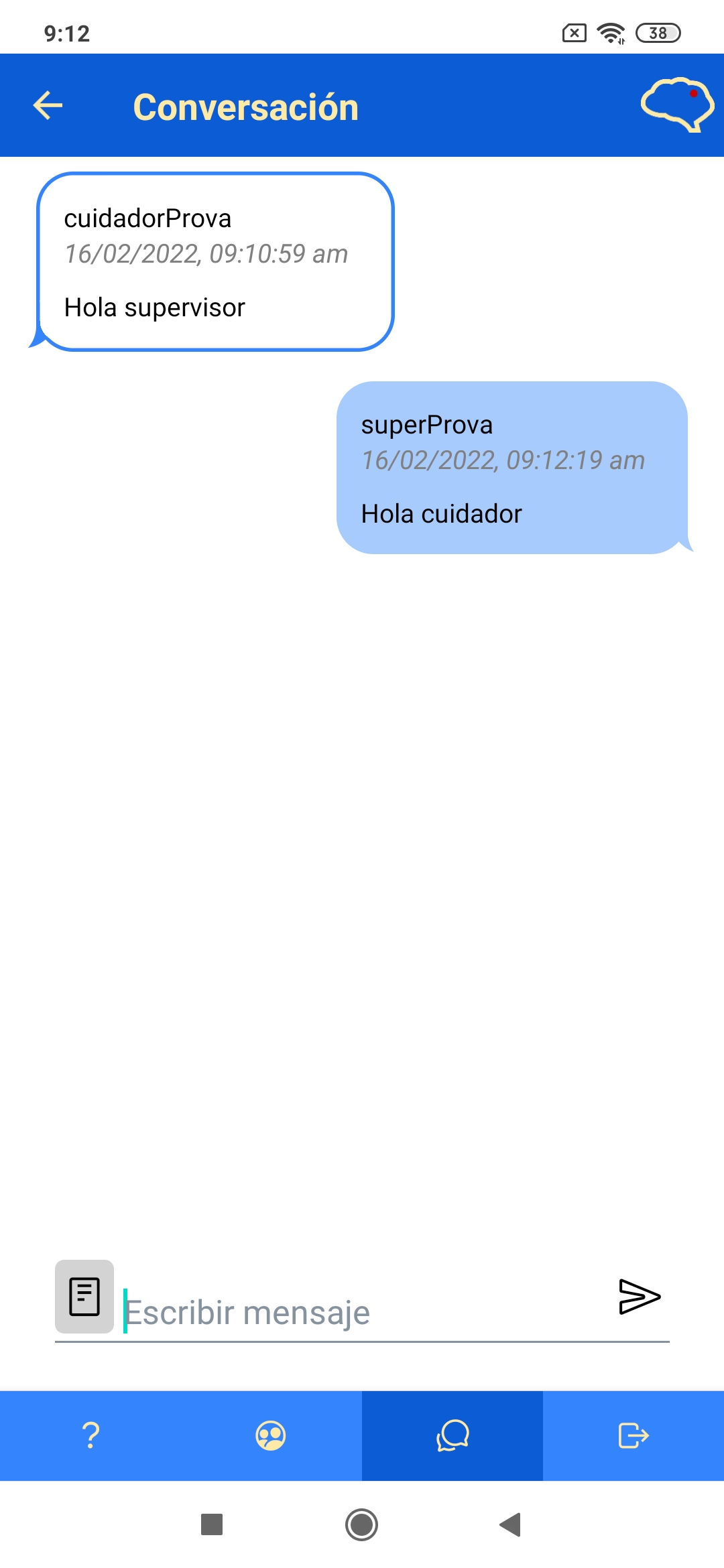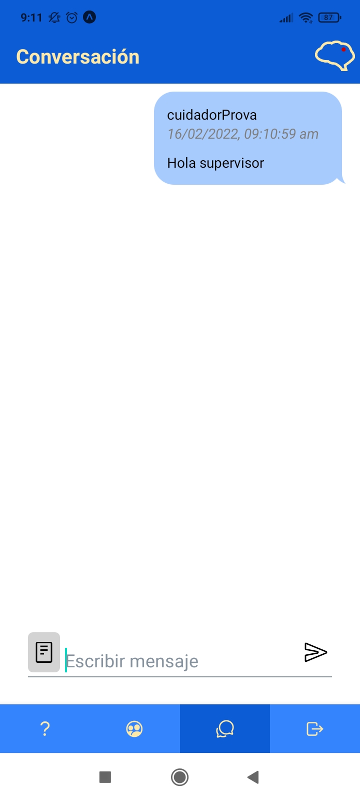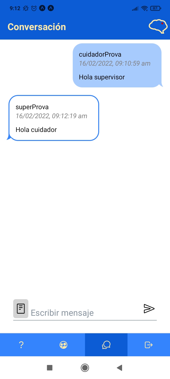 Pantalla a través de la cual pueden comunicarse los usuarios de forma directa. Esta pantalla es ligeramente distinta para los cuidadores y supervisores: